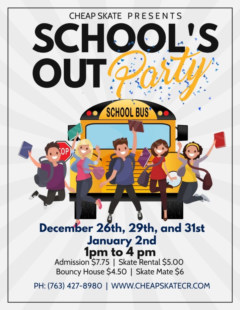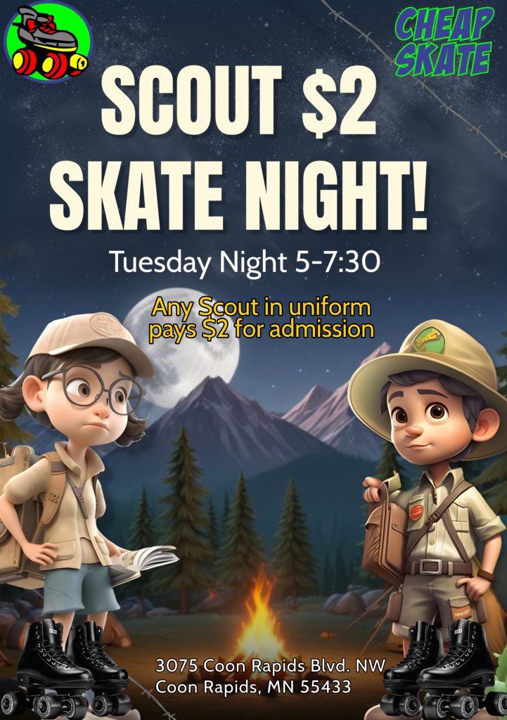 Cheap Skate follows the Anoka-Hennepin (District 11) school schedule for open hours during the school week. Our schedule is in effect from the time school goes into session in September until school is out for the summer.